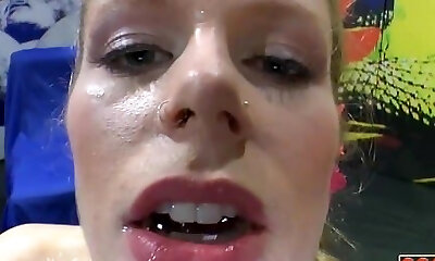 Sinful babe gets jizm shot on her face swallowing all the jizm