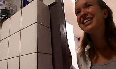 Brunette shemale pulverized bareback by 2 men