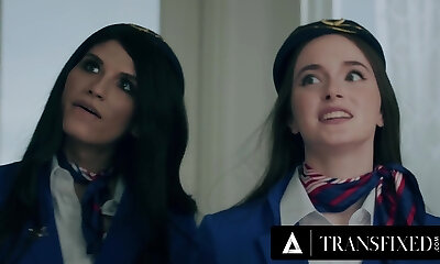 Super-cute Huge-titted Teen Stewardess Enjoys Gonzo Sex With Her Charming Brunette Shemale Colleague
