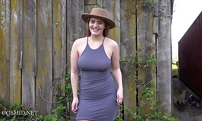 Splendid cowgirl with nice big boobies is eager to masturbate a bit