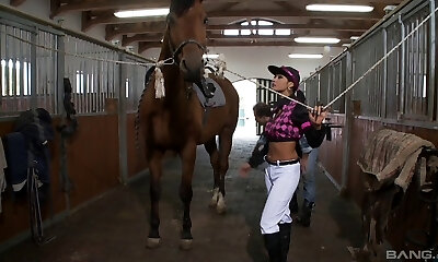 ai- geile koreanische dienstmädchenschlampe reitet dicken schwanz in strümpfen und rüschenuniform