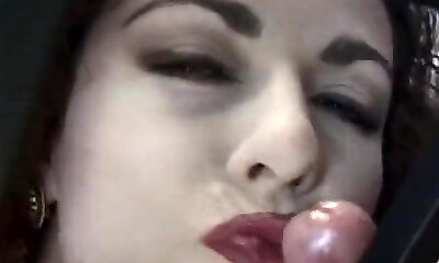Slutty dark-haired Skyy Cherry milks a trunk dry on her hot tongue