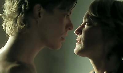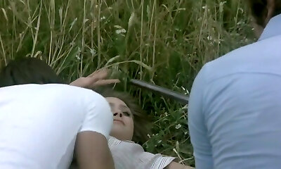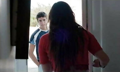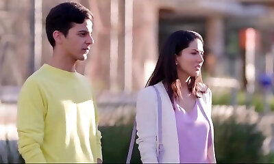 немецкая модель в футболке и подросток трахаются втроем на шпильке