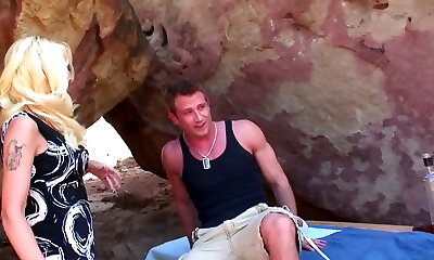 супер-горячая нимфа с толстыми сиськами в униформе трахается с одним здоровенным чуваком в возрасте и его приятелем по члену размером с батат в классе