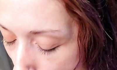 Humungous Pineapple babe swallows blast she drains from my good-sized cock outside on the porch in daylight and doesn't care